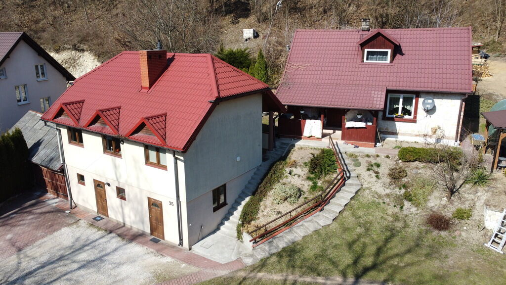 Dwa domy wolnostojące (jeden rodzinny, drugi z pokojami dowynajęcia) na pięknej działce o pow. 2148 m2 przy ul. Doły 1,5 km
