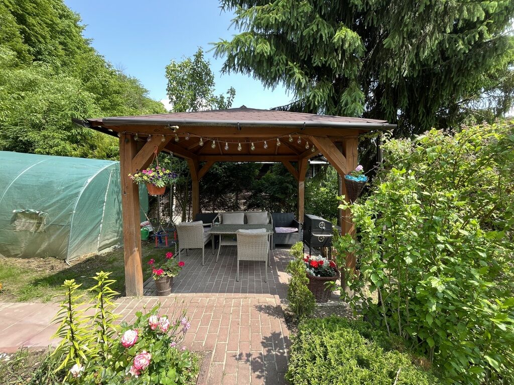 wynajem. Obok domu znajduje się drewniana altana do odpoczynku. Za