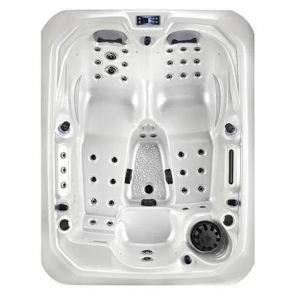 Jacuzzi oferuje 2 komfortowe leżanki oraz 1 wygodne miejsce siedzące, zapewniając maksymalny relaks dla trzech osób.